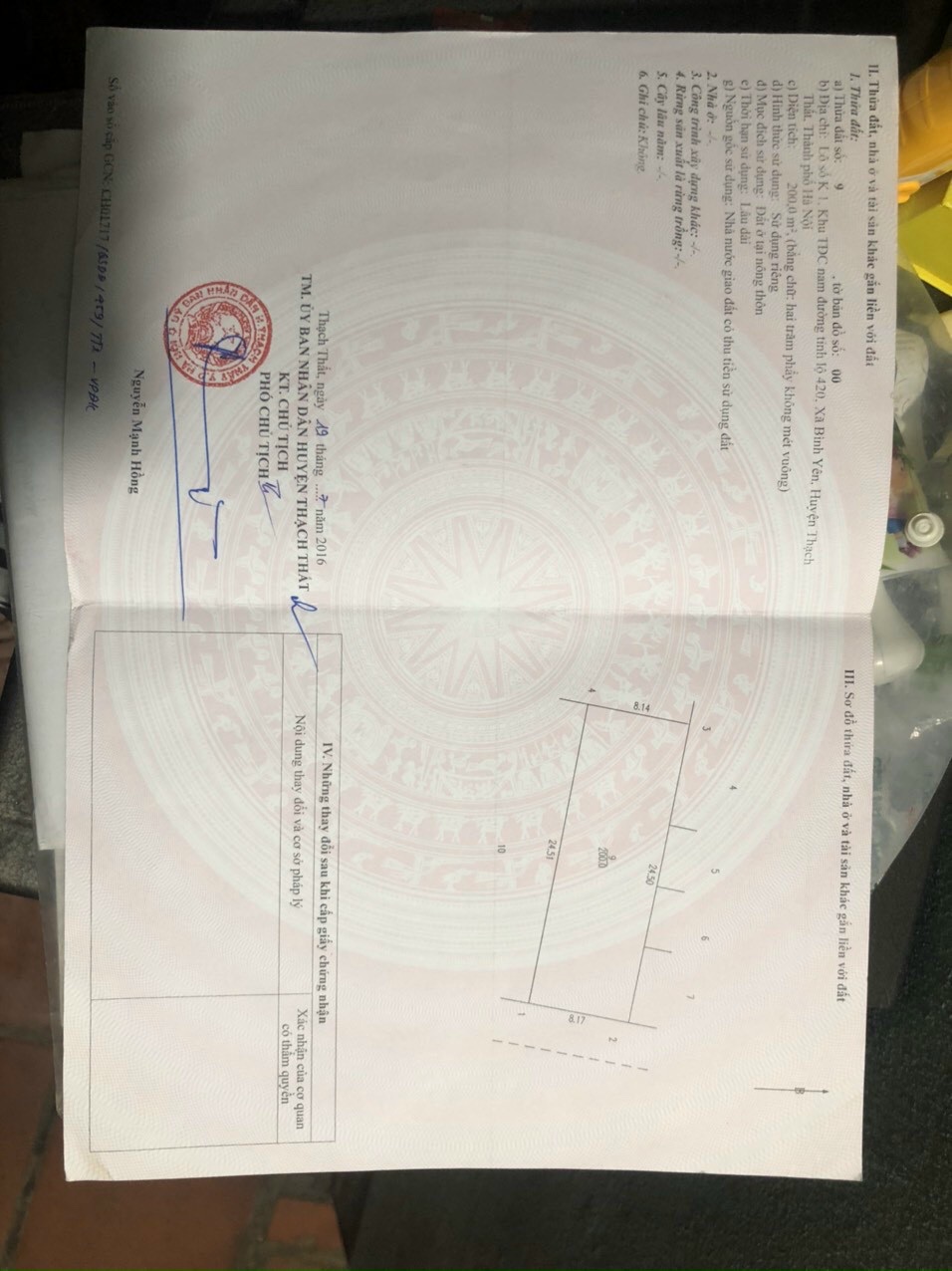 – Vị trí lô đất: khu tái định cư Bình yên, huyện Thạch Thất, TP Hà Nội